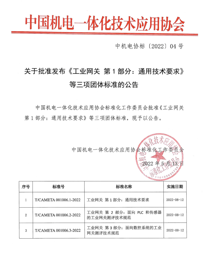 2022年5月13日,PA视讯国际智通核心参编的工业网关标准,已正式顺利获得审批!将于2022年8月12日正式实施!